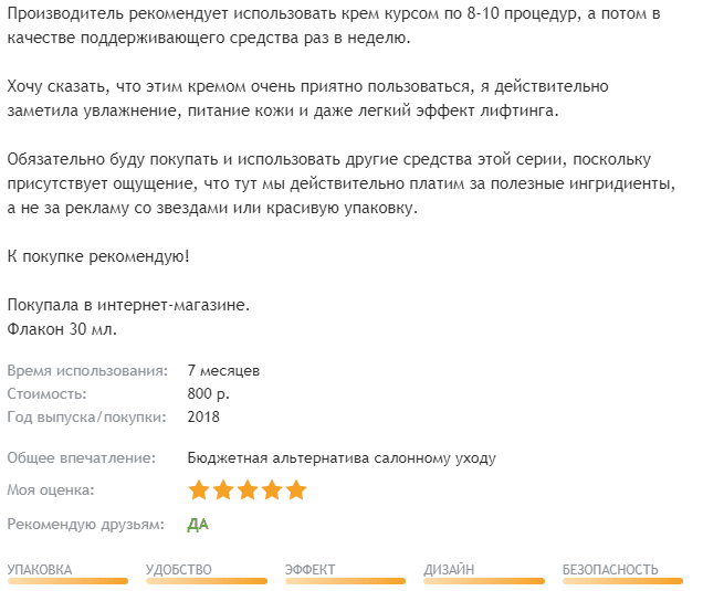 Многие предпочитают ухаживать за лицом, используя не самые дешевые, но и недорогие средства. Такая продукция характеризуется комплексным воздействием на кожу, имеет безопасный состав. Это подтверждается положительными отзывами о кремах от морщин от 35 лет.