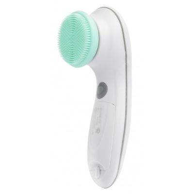 Массажер для ухода за кожей лица, шеи и зоны декольте. В комплект входит 3 силиконовые насадки. Первая, крупнозернистая насадка, предназначена для удаления загрязнения, косметики, подходит для частого использования. Вторая, мелкозернистая щеточка, предназначена для проведения процедуры пилинга, рекомендуется использовать не чаще 1 раза в неделю. Третья щеточка, предназначена для массажа, благодаря чему улучшается лимфоток, кровоснабжение кожи. Имеется 2 режима скорости вращения дисков, низкая – для чувствительной и нормальной кожи, высокая – для комбинированной и жирной кожи. Средняя стоимость товара 1500 руб.