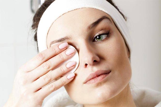 - Тонизирующий лосьон после снятия макияжа несколько успокоит и сузит поры.