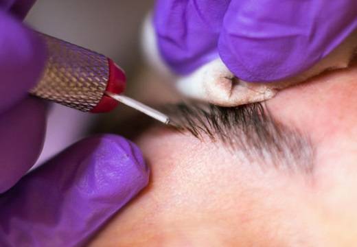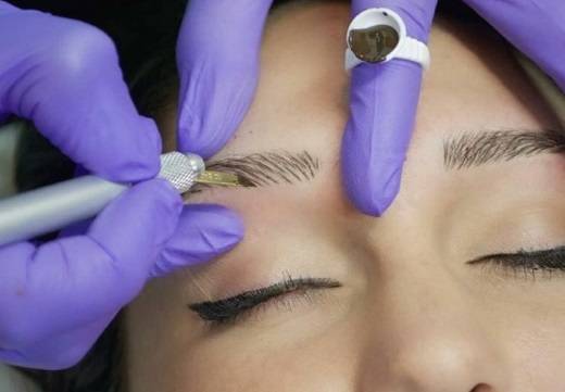 Работая в волосковой технике, мастер с помощью машинки для перманента имитирует рост натуральных волосков, делая поверхностные штрихи-надрезы и заполняя их пигментом.