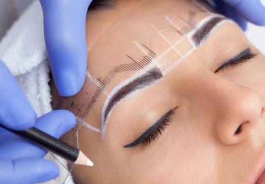 Чтобы сделать такой макияж, для начала нужно тщательно очистить кожу надбровных дуг. После этого специалист делает наброски с учетом нужной ширины, длины и изгиба бровей. Затем на поверхности эпителия выполняют несколько контрольных проколов.