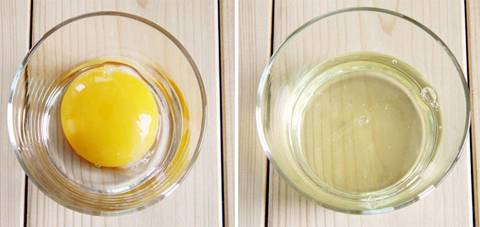 Смешать белок, жидкий мед (12 гр), растительное масло (3 капли) и лимонный сок (5 мл). Держать 10 минут.
