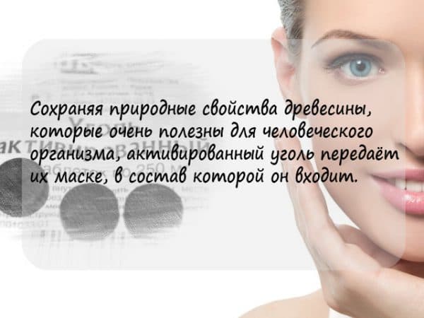 Активированный уголь в составе косметическом маски оказывают положительное действие на кожные покровы: