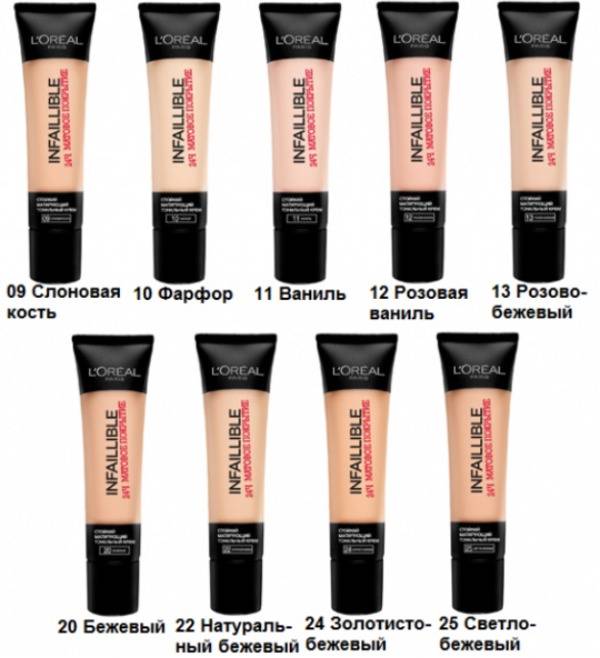 Средства от известного бренда имеют различные параметры. Тональные кремы различных линий имеют высокую стойкость, отличаются оттенками цвета. Многие средства обладают эффектом защиты от ультрафиолета. Они придают коже сияние или матовость, маскируют дефекты и подчеркивают достоинства.