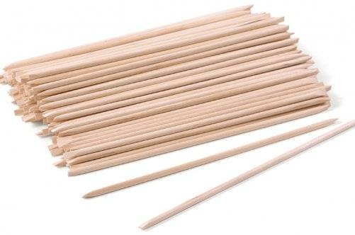 - Можно встретить заменитель дереву – пластик. Но такие палочки приобретать не стоит. Пользы и эффекта от них мало. К тому же пластмассовые палочки подходят для тонкой кутикулы.