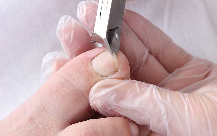 Распарив ноги, нужно их вытереть насухо полотенцем, особое внимание уделив пальцам и пространству между ними, после чего можно приступать к процедуре. Для начала с помощью ножниц или щипчиков (кому как удобнее) необходимо избавиться от омертвевшей кожи, что образовалась с двух сторон ногтя