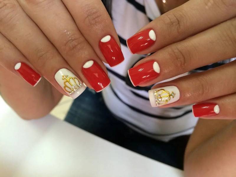 Красно-черно-белый маникюр с золотом