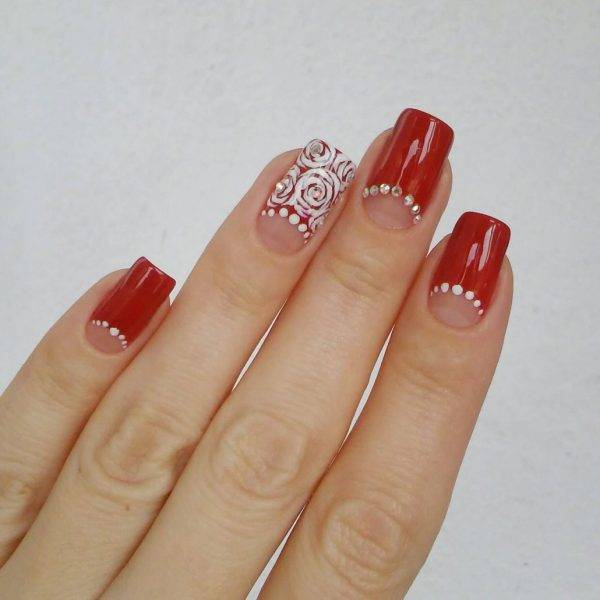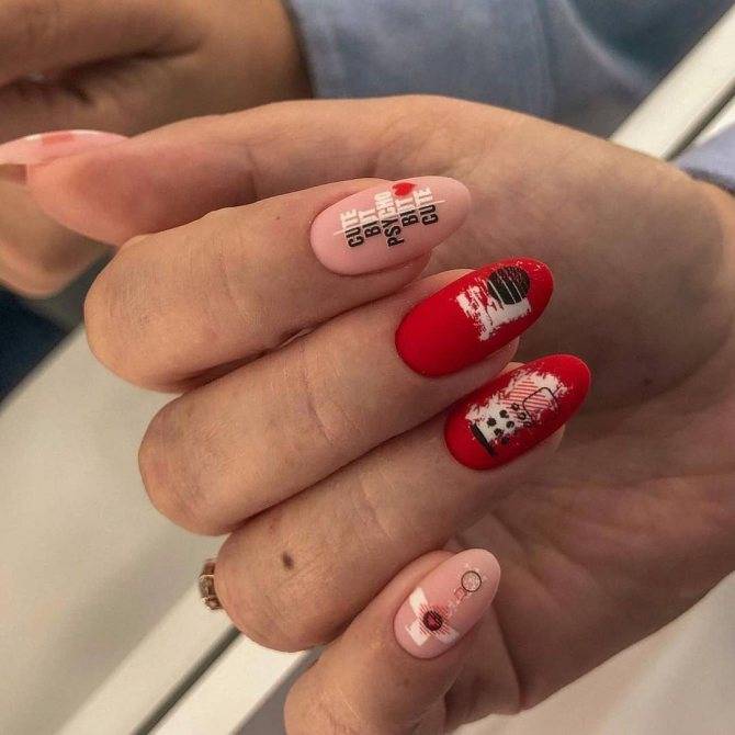 Трендовый красный маникюр с рисунками