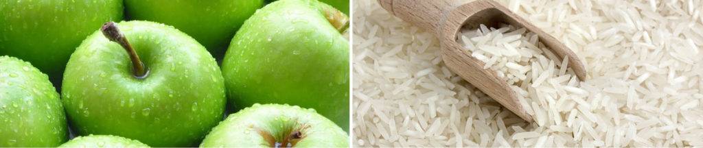 - 2 день – на завтрак рисовая каша, сваренная на воде без соли, сахара и масла, на обед рисовая каша с пюре из 4-5 запеченных яблок, на ужин еще одна порция рисовой каши;