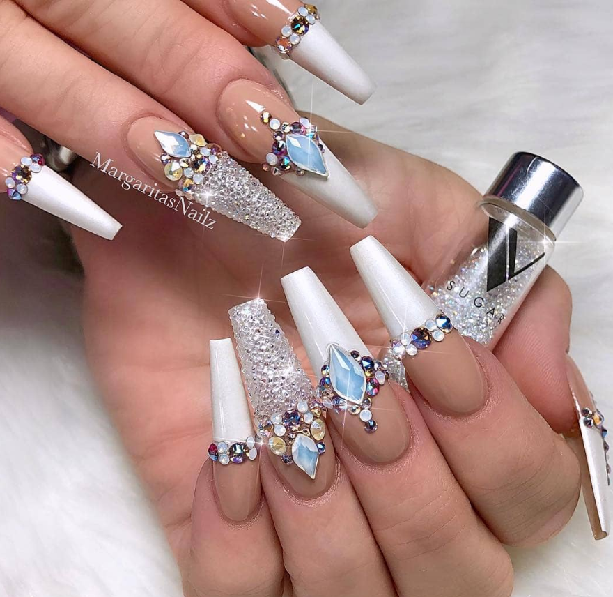 Декорируйте композиции стразами, блестками, бульонками, мелким глиттером, акриловой пудрой, переводной фольгой и другими материалами.