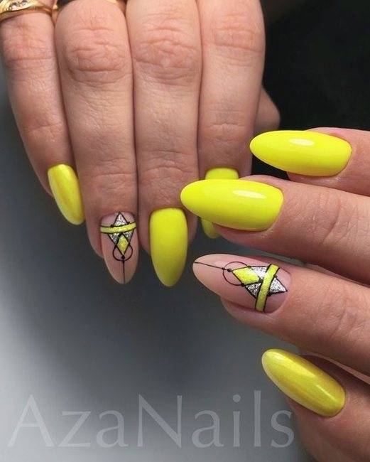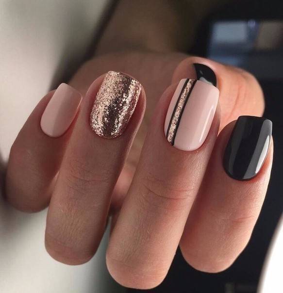 Как вариант, можно добавить на один или два ногтя несколько абстрактных геометрических фигур. Или украсить пару ноготков фольгой. Можно добавить бульонок или блесток в дизайн.