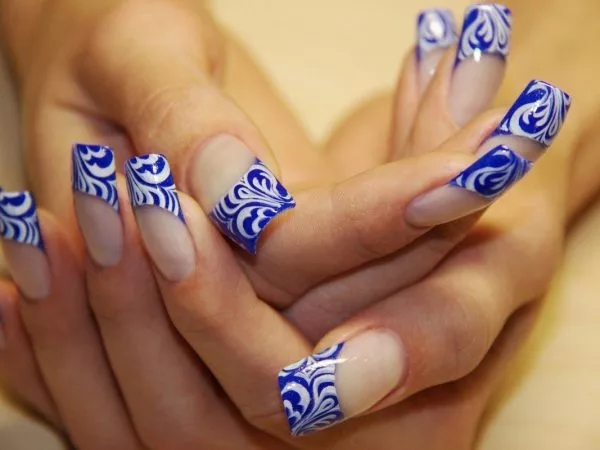 Французский маникюр «Абстракция». Сочетание сдержанной классики и загадочных изображений создает в результате легкий к восприятию дизайн. На фото представлены работы бывалых мастеров. Как видите, свободный край может обрести разные конфигурации. А правило во френче одно – наличие ее, той самой линии улыбки.