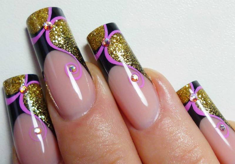 - мизинец можно дополнить широкими волнообразными линиями золотистого цвета.