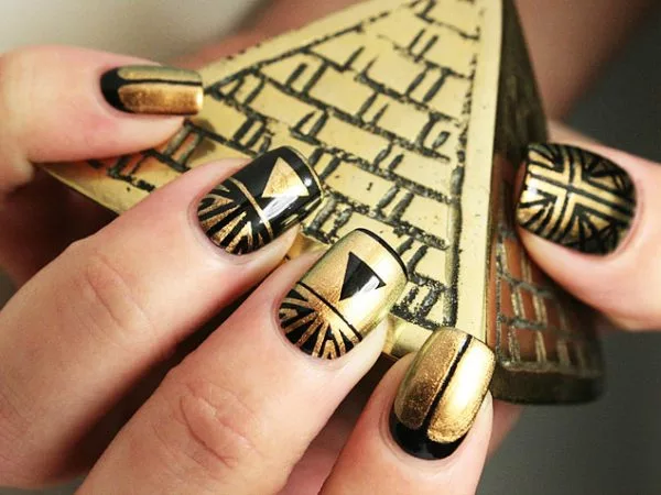 - безымянный палец нужно покрыть золотым лаком, а мизинец – черным;