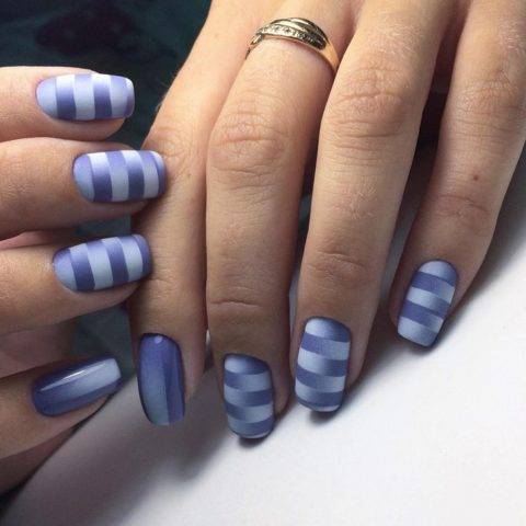 - Для начала проделайте все стандартные манипуляции: хорошо отполируйте ногти, нанесите базовое покрытие, затем основной цвет, например, синий. Хорошо просушите каждый слой.