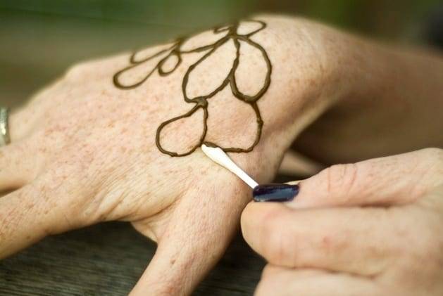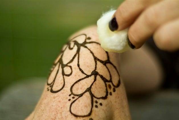 Когда рисунок готов, снимите хну ваткой, смоченной в смеси лимонного сока и сахара