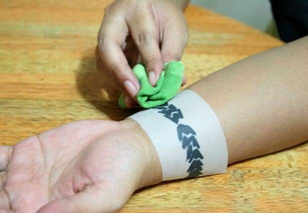 - Место будущего тату требуется обезжирить спиртовым раствором.