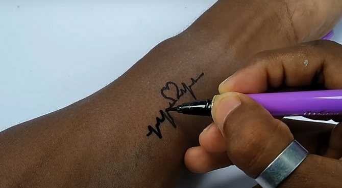 - Обезжирить кожу и точными движениями нарисовать выбранное изображение.