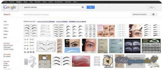 Через поисковые системы в интернете подыщите интересующую Вас форму бровей и подгоните под свой размер.