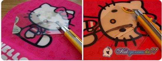 - На кальке рисуется картинка или пишется фраза, а затем вырезается по нужному размеру.