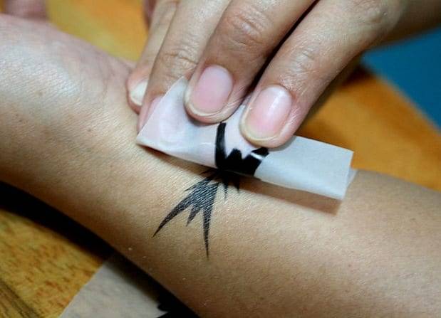 Методы нанесения описаны выше, изображения этого типа держатся непродолжительное время, но она не оставляет следов на коже.