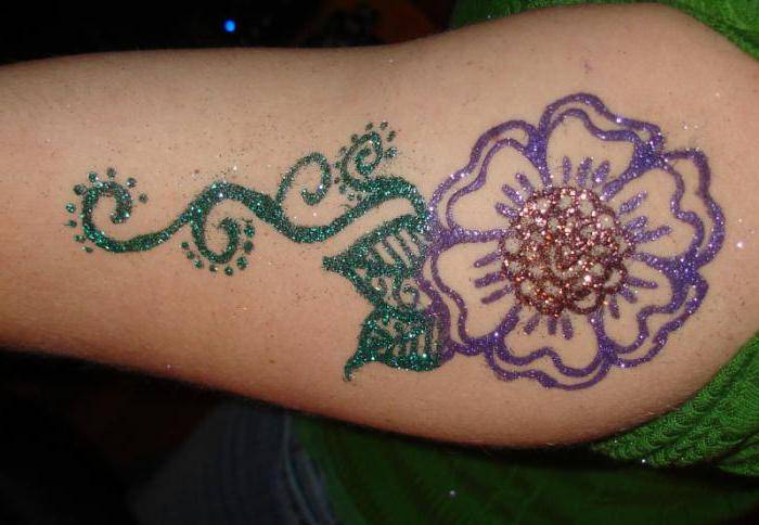 Есть еще один способ, позволяющий создать смываемые рисунки на теле. Можно сделать временные татуировки на месяц с помощью специального клея. Приобрести такое чудо-средство можно в специализированных магазинах. Способ нанесения изображения с помощью клея столь же безопасный и не вызывает болезненных ощущений. Кроме того, таким образом можно выполнить яркий эффектный рисунок с применением стразов и блесток.