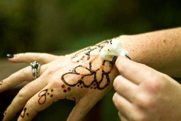 Лимонный сок окисляет смесь хны, и рисунок светлеет, а сахар «приклеивает» рисунок к коже