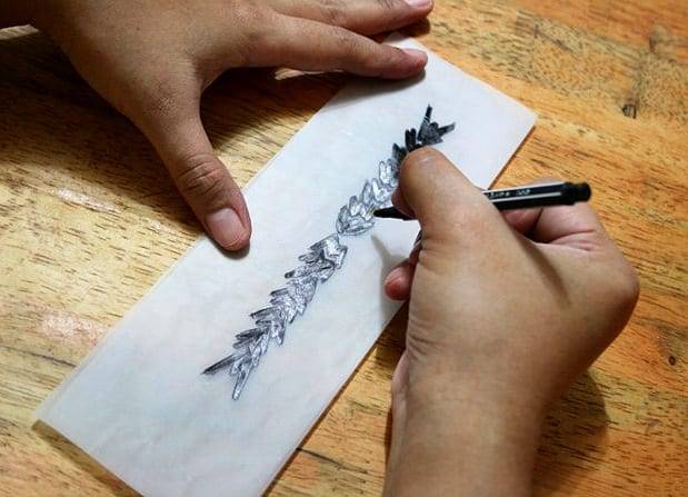 Ещё один вид временного тату. Нарисуйте на кальке или пергаментной бумаге эскиз вашей татуировки гелевой ручкой
