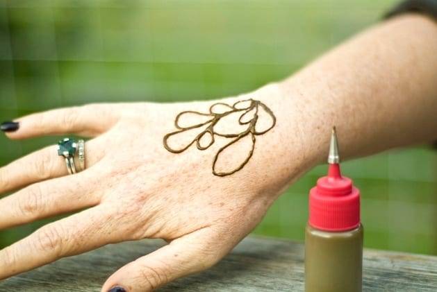 : Никогда не используйте ничего металлического с пастой из хны — используйте пластмассу или стекло.