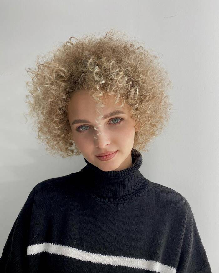 Афро кудри на короткие волосы делают женщину по-детски трогательной. Кудряшки придают больше кокетства и соблазнительности.