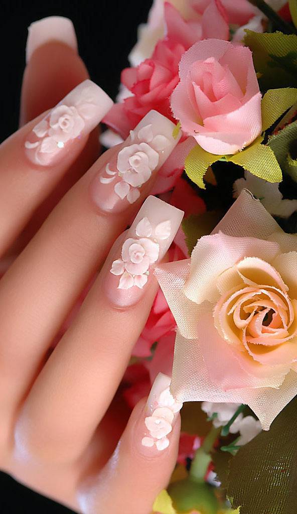 Акриловая лепка – это особая технология, которая с помощью акрила позволяет создавать объемные элементы на ногтях. Дизайн ногтей с эффектом 3D отлично подходит для праздничного торжественного образа. Особенной популярностью лепка акрилом пользуется в свадебном маникюре. Нанесение объемных рисунков больше напоминает создание скульптуры. При помощи акриловой жидкости (мономера) и акриловой пудры можно создавать на ногтях настоящие произведения искусства. Такой яркий запоминающийся маникюр не оставит вас без внимания. На фото примеры изящного дизайна с акриловой лепкой.