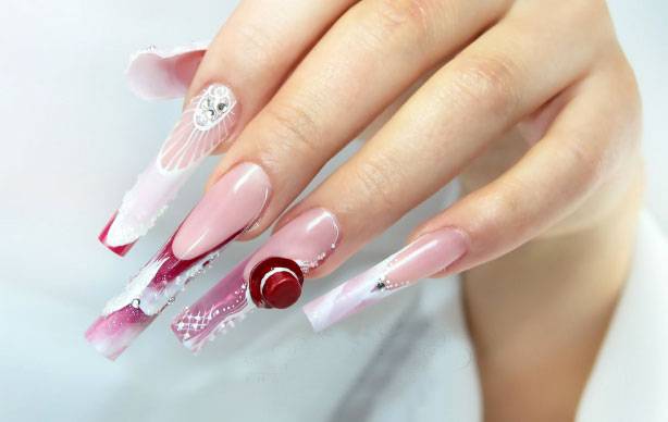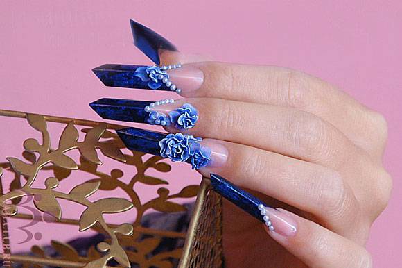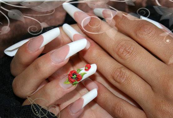 Самым интересным, но в то же время сложным моментом, конечно же, является выполнение акрилового рисунка. Элементы такого рисунка могут быть разными, но, как правило, всегда актуален цветочный орнамент, например, розы с лепестками. При выполнении акриловой лепки главная задача – создать, а главное, сохранить объем рисунка на ногте. Но если будут соблюдены все требования технологии выполнения акриловой лепки, то обязательно получится красивый объемный рисунок.