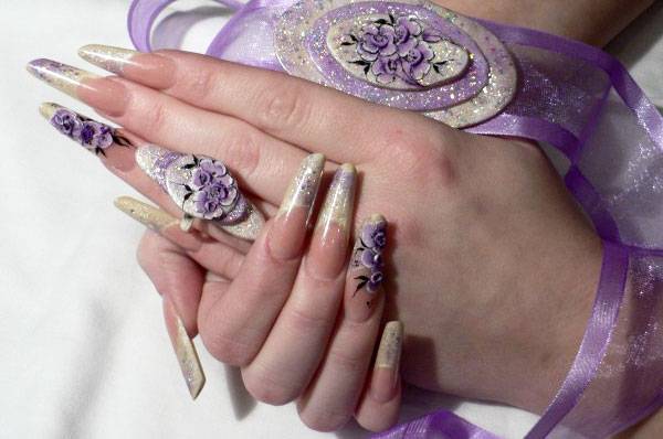 , он хоть и прочный, но объемная лепка будет мешать в повседневной жизни. Чтобы на ногти нанести оригинальный узор, понадобится помощь профессионального специалиста. Конечно же маникюр вполне реально выполнить и самостоятельно, но для его оформления понадобится наличие специальных материалов и навыков в арте.