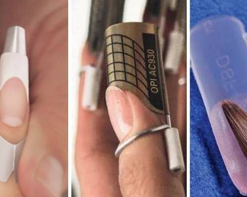 Все, что нужно для наращивания ногтей на типсы, – собственно накладки, гель (или другой материал), клей, гель-лак (или обычный лак) и инструменты.