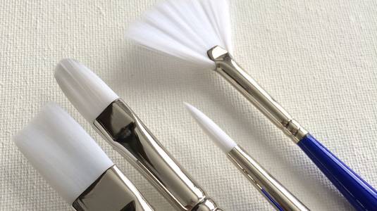 Художественные кисти отличаются по размеру, по форме (круглые или плоские), по составу (синтетические или натуральные), по жесткости (щетина и синтетика жестче, чем пони и белка). Поскольку акриловые краски плотные и тяжелые, их лучше удерживают синтетические кисти средней жесткости.