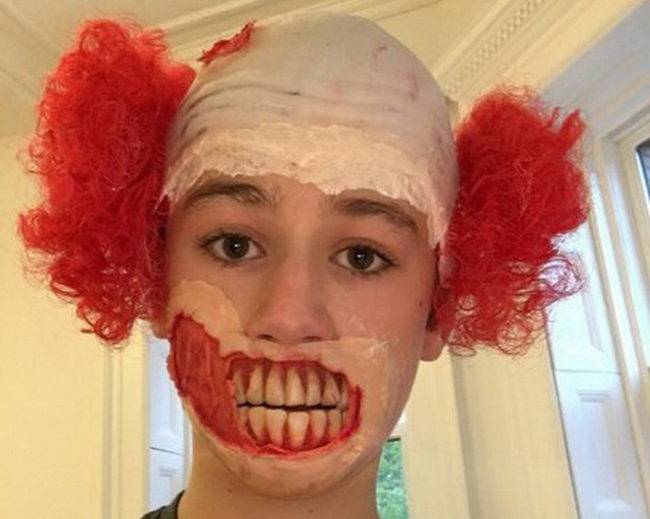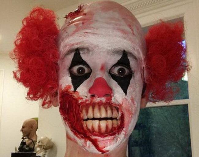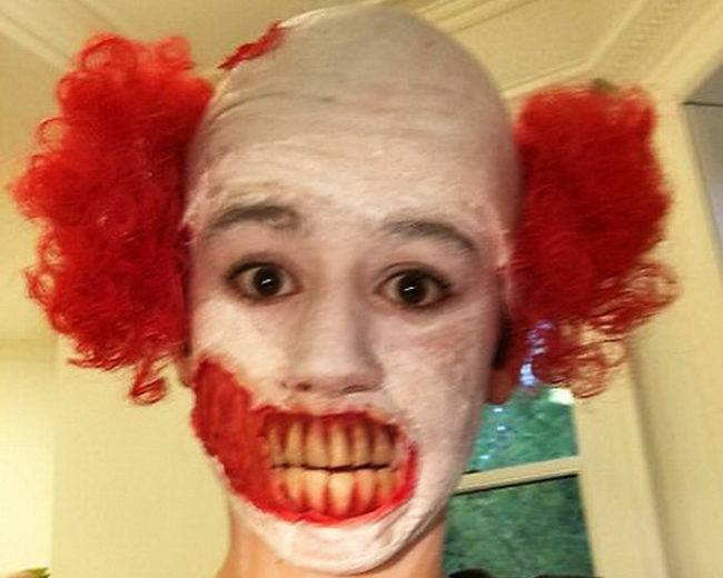 Всё, что останется сделать, это одеть костюм клоуна и разлить на него кровь. Придать вашему персонажу устрашающий вид смогут расширенные глаза. Не забывайте об этом во время общения со сверстниками на вечеринке.
