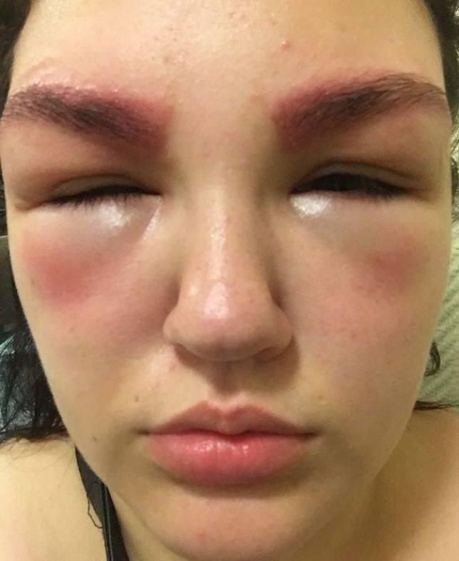 В редких случаях после окрашивания бровей возможно развитие отека Квинке