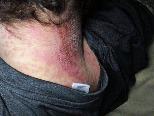 практически в каждом случае гиперемия сопровождается сильным зудом и сыпью, довольно часто появляется жжение и шелушение кожных покровов;
