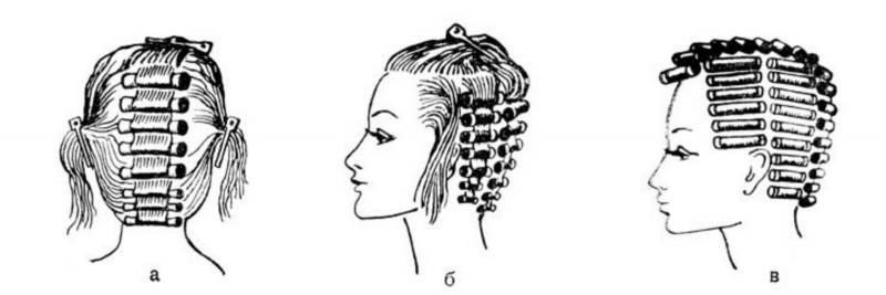 По классической схеме накручивать волосы на бигуди начинают с центра фронтальной зоны и постепенно спускаются на затылок. Для этого нужны крупные бигуди. После можно завивать волосы по бокам на бигуди меньшего диаметра.