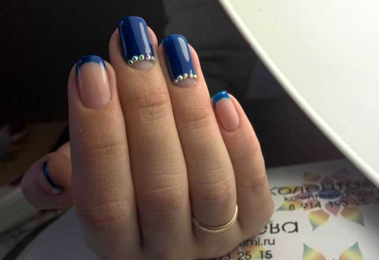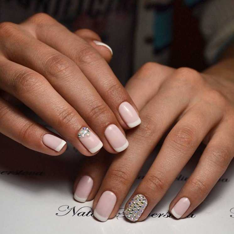 Вариации сиреневого и бирюзового благоприятно скажутся на настроении и замечательно подойдут для романтической встречи. На пальчиках с бледной кожей выгодно и очень романтично смотрится классический френч оттенка «розовое золото». Стильно выглядят молочно-белые или зеленые торцы ногтя, украшенные стразами.