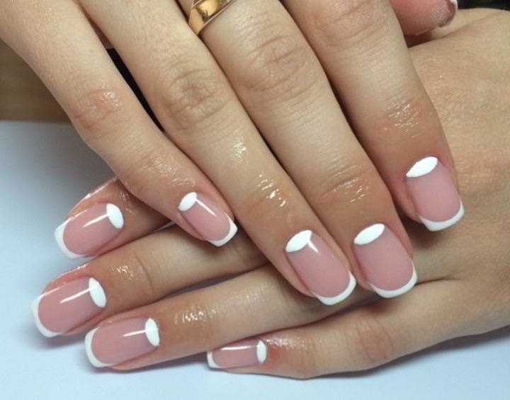 Неспроста этот маникюр полюбился всем женщинам, без исключения. Благодаря тому, что в классическом исполнении сводный край ногтевой пластины покрывается лаком белого цвета, с ним можно находиться и в светском обществе, и на вечеринке, и на деловом совещании. Будьте уверены, френч смотрится естественно, элегантно и ненавязчиво.Помимо этого французский дизайн может помочь в визуальном скрытии незначительных дефектов ногтевой пластины. Длина отросшего края легко корректируется шириной белой полосы, поэтому все ноготки выглядят одинаковыми.Профессиональные и домашние мастера практикуют два способа создания французского маникюра: