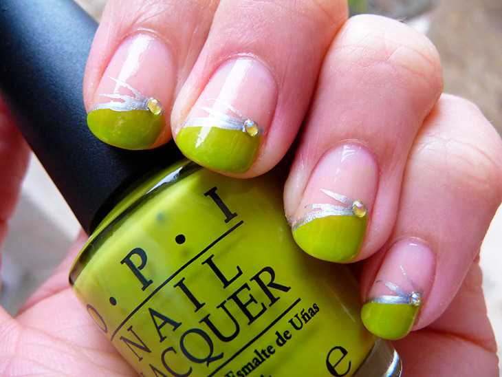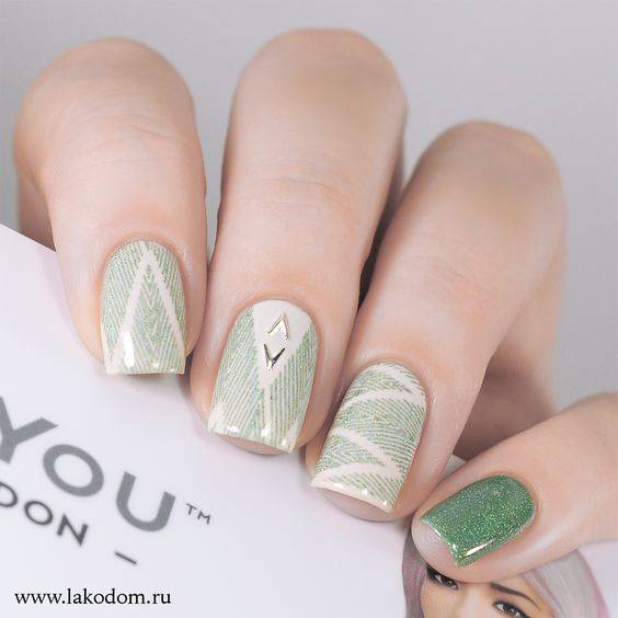 Комбинировать маникюр с зелёным нужно осторожно. Тон уместно сочетать в качестве акцентов. Подобранное правильное соединение с одеждой, освежит лук
