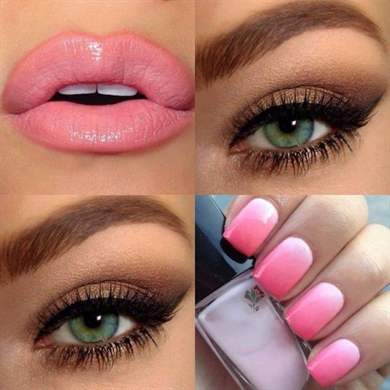 - Сочетание с помадой такого же цвета. Допустимое различие — не более одного тона.