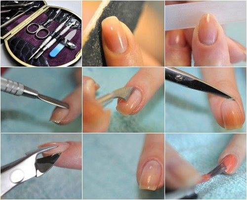 Если Вы привыкли самостоятельно делать маникюр, у Вас есть свободное время и желание для придания красоты ногтям, то при проведении процедуры американского маникюра у Вас не возникнет никаких проблем. Посмотрим, какие же этапы Вам необходимо пройти.