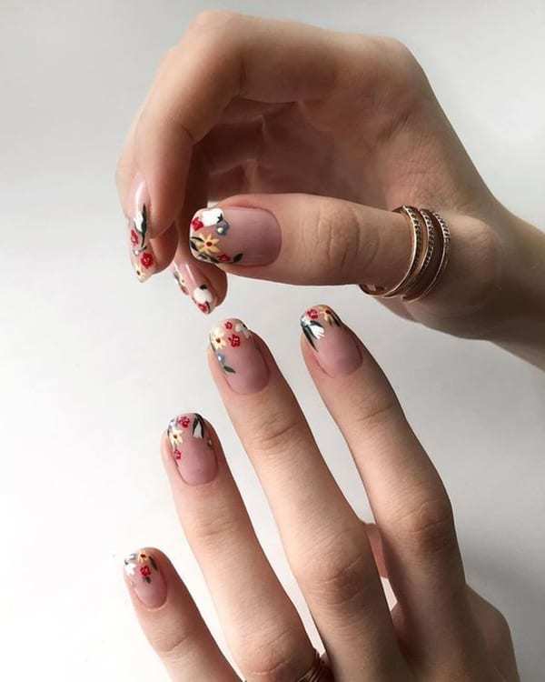 Впрочем, для долговечности дизайна цветы можно размещать не только на окантовке ноготков. При условии удачной композиции (с началом не у самой кутикулы) изысканные цветочные мотивы не протяжении нескольких недель будут выглядеть эстетично и опрятно.