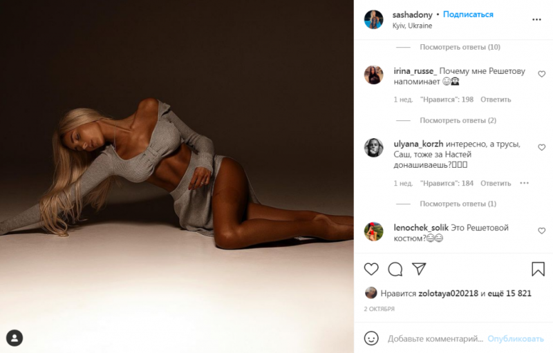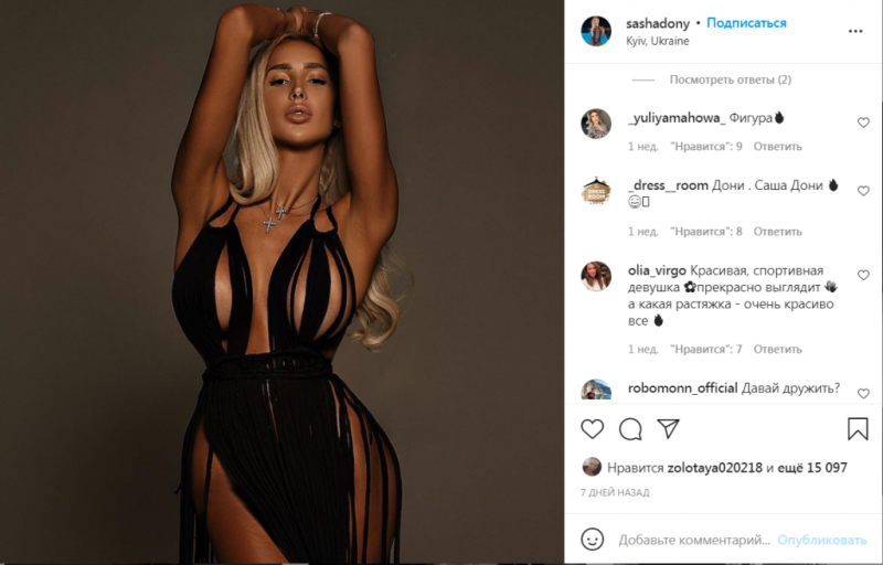Подписчики в Инстаграм, которых у Саши Дони уже более 143 тысяч, разделились на два лагеря: одни восхищаются ее красотой и пластикой.