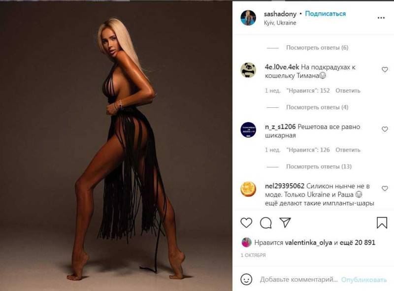 Другие, как и положено звезде, хейтят все публикации. Дони постоянно напоминают о том, что она переборщила с ботоксом и силиконом, о том, что Решетева лучше и что Сашу интересуют только деньги знаменитого артиста.