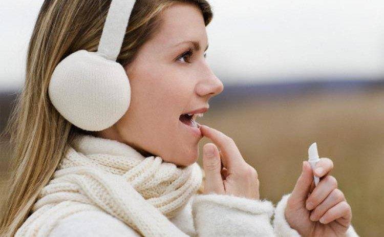 - Нанесите средство на уста подушечками пальцев, распределите его по их поверхности.