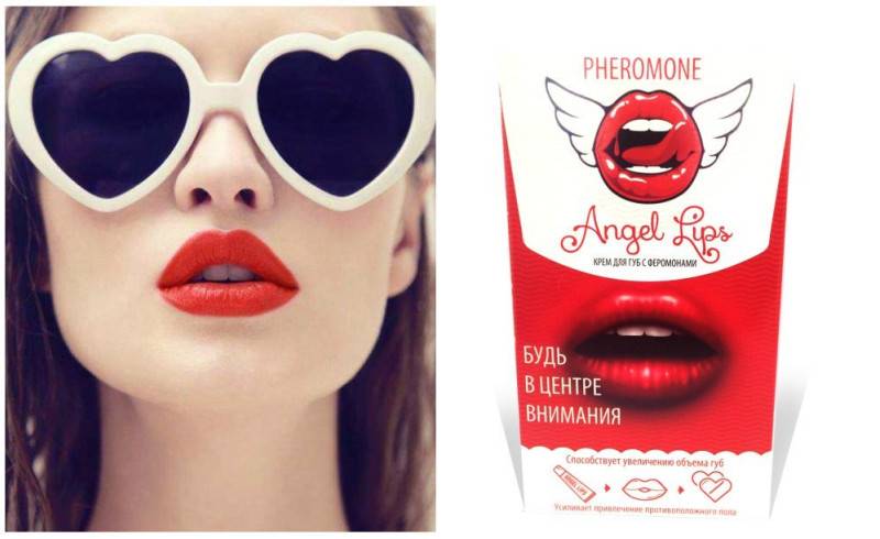 - Angel Lips. Крем с феромонами и эфирными маслами. Помогает нормализовать кровообращение в области губ, увлажнить их и напитать нужными веществами.