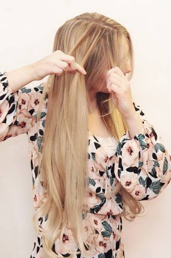 Отделите 1-дюймовую прядь от передней части головы и разделите ее на три равные части. Затем возьмите левую и правую пряди волос и скрестите их посередине, как французскую косу. Здесь на помощь приходит техника водопада: вместо того, чтобы продолжать плетение, опустите правую прядь и замените ее новой прядью волос от корня. Перекрестите эту новую прядь через среднюю часть и повторите тот же шаг с левой прядью.